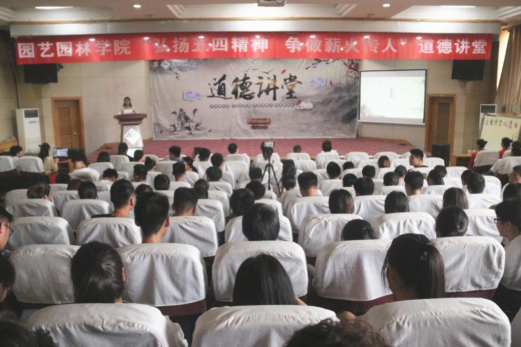 6月14日下午,由校文明办主办、园艺园林学院承办的第八十期道德讲堂在图教201举行。校团委、园艺园林学院等单位负责人,园艺园林学院全体辅导员以及学生代表200余人参加了活动。
