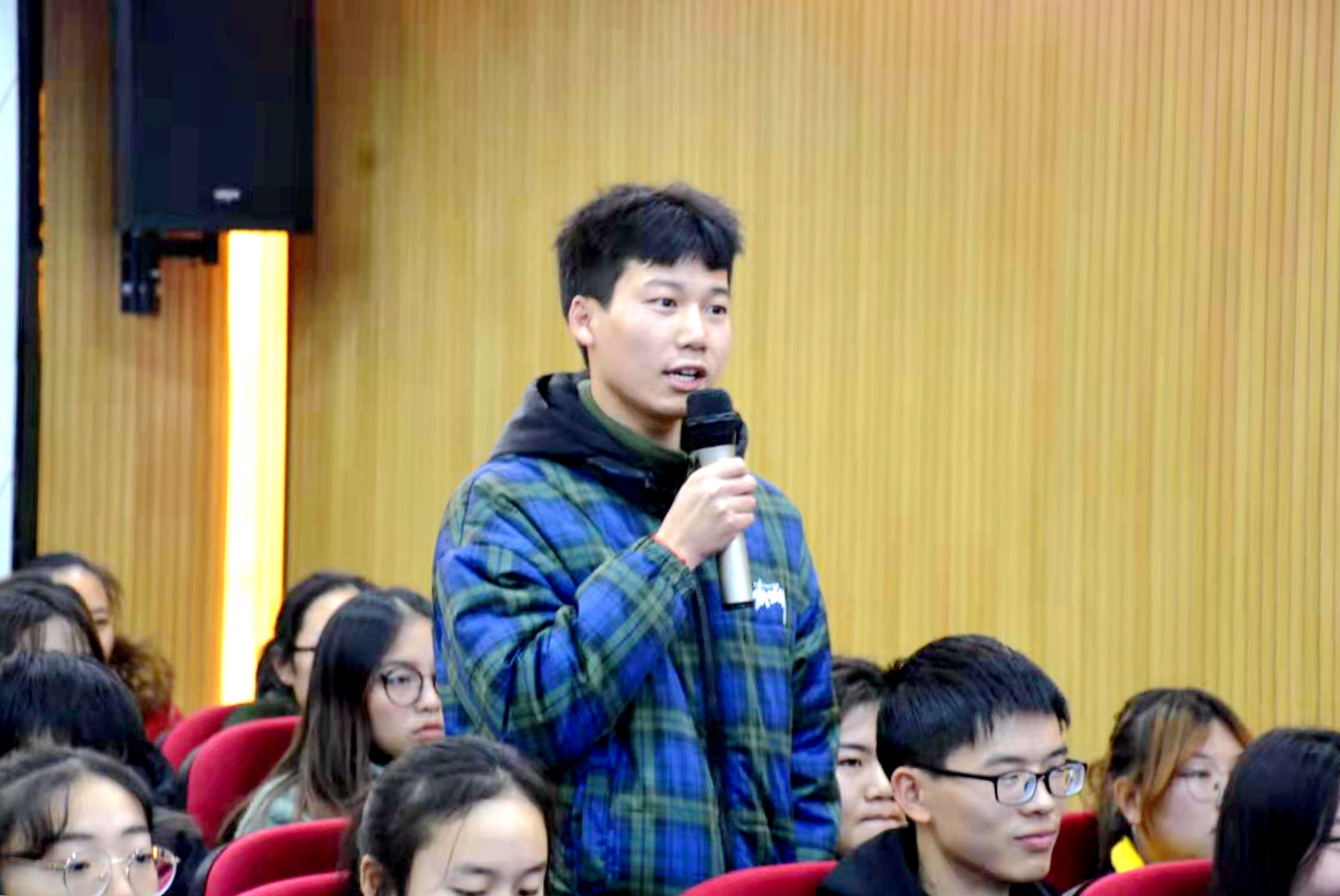 活动在歌曲《强国一代有我在》中拉开帷幕,一件件感人肺腑的事迹,一段段动人心弦的故事,感动了在场的所有观众。在“谈感悟”中同学们纷纷道出自身感悟;身边的榜样用自身真实的故事讲述了他们不平凡的人生,展现出昂扬向上的精神。活动尾声,大家整齐有序的在心愿墙上留下了内心最真挚的祝福和美好愿望。