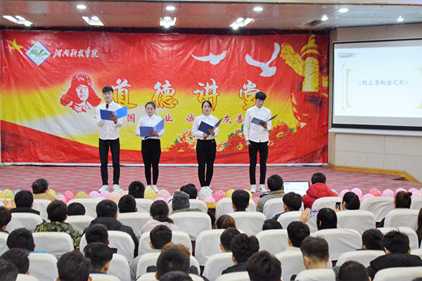 12月21日上午,由校文明办主办、体育学院承办的第六十二期道德讲堂在图教201举行。体育学院党政领导、教师及学生代表200余人参加了活动。
