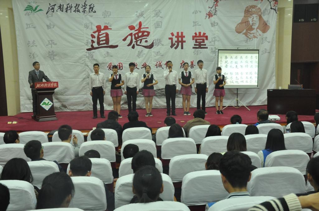 11月2日,由校文明办主办,文法学院承办的我校第十八期“道德讲堂”在办公楼三楼多功能报告厅举行,校党委宣传部、学生处、文法学院等单位负责人及文法学院师生代表300余人参加了本次活动。