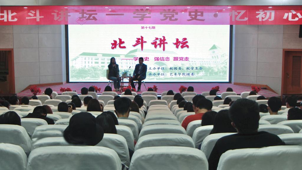 3月30日下午,由校团委、校学生会主办,艺术学院团委承办的第十七期“北斗讲坛”在图教201报告厅举行。艺术学院辅导员、校学生会工作人员、学生代表共计200余人参加了本次活动。