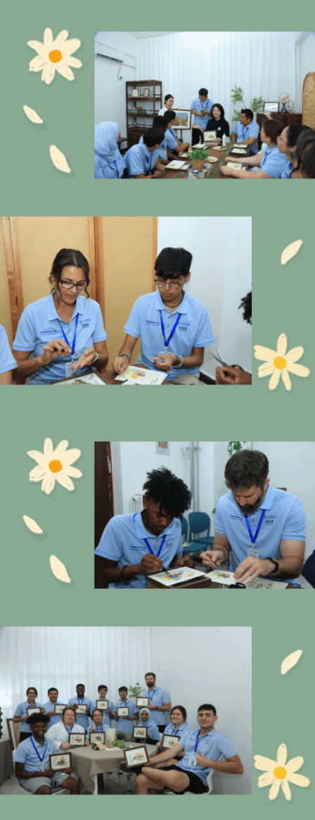 6月17日,在园艺园林学院刘砚璞老师的专业指导下,美国师生开启了压花艺术的探索之旅。刘砚璞老师从压花技艺的历史脉络讲起,将这门源于植物标本制作、兼具艺术与实用价值的传统工艺娓娓道来。在实操环节,从采摘新鲜植物、巧妙压制塑形,到创意拼贴成画,每一步都凝聚着中国匠人对自然与美学的深刻理解。美国师生们沉浸其中,用不同文化视角创作出别具一格的压花作品,这些作品不仅是艺术成果,更是文化传播的生动载体,让压花技艺跨越语言障碍,在异国青年心中生根发芽。