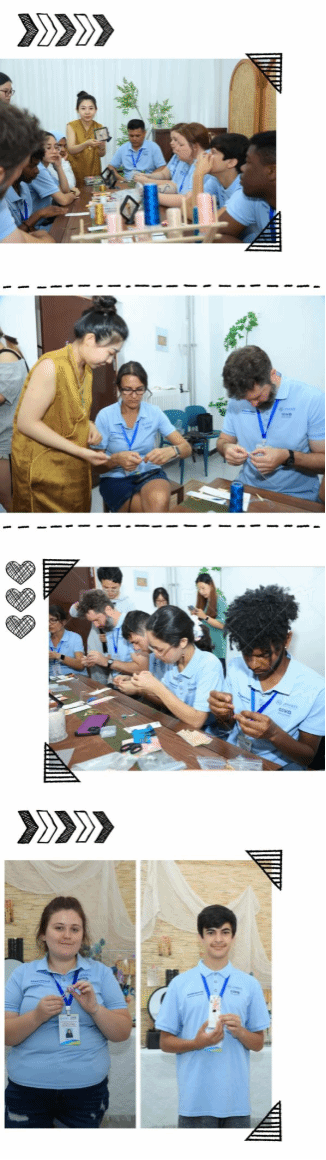 6月21日,服装学院徐辰阳老师带领美国师生深入体验缠花和宋锦配饰制作。缠花,这门以桑蚕丝为媒、通过缠绕编织塑造灵动造型的非遗技艺,以及被誉为“锦绣之冠”的宋锦织造艺术,向美国师生展现了中国丝织文化的博大精深。徐辰阳老师一边讲解缠花的复杂技法和宋锦的独特纹样寓意,一边手把手示范制作要点。美国师生们尽管动作略显笨拙,但在一次次尝试中,逐渐掌握了缠花的缠绕规律和宋锦配饰的缝制技巧。当他们完成自己的作品时,不仅收获了成就感,更对中国非遗技艺的精妙绝伦赞叹不已,也让缠花和宋锦这两项珍贵的非遗技艺获得了国际关注。