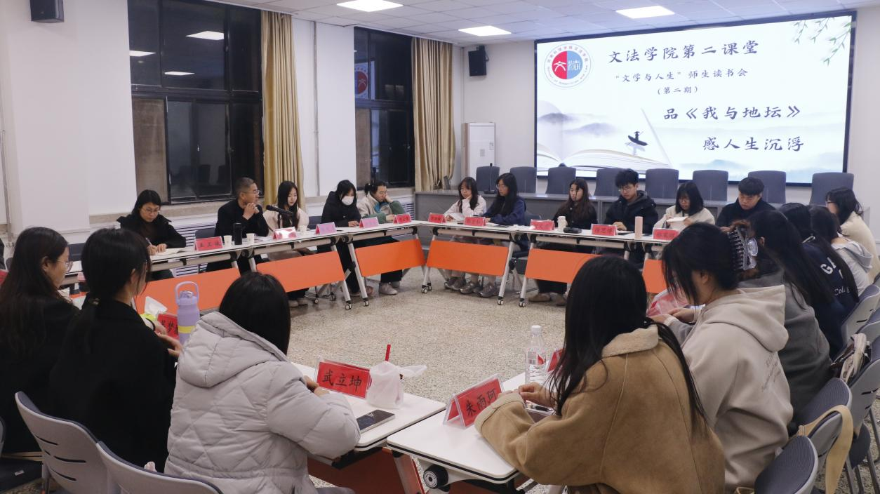 为深入贯彻落实师范专业认证背景下“第二课堂”育人理念,进一步提升育人实效,文法学院于3月28日晚在301会议室成功举办了“文学与人生”第二期师生读书会。本次活动由文法学院现当代文学党支部主办,旨在为师生搭建一个共同探讨经典文学作品的平台。文法学院张东旭老师、张则天老师、王卫波老师以及中文汉教专业学生参与本次活动。