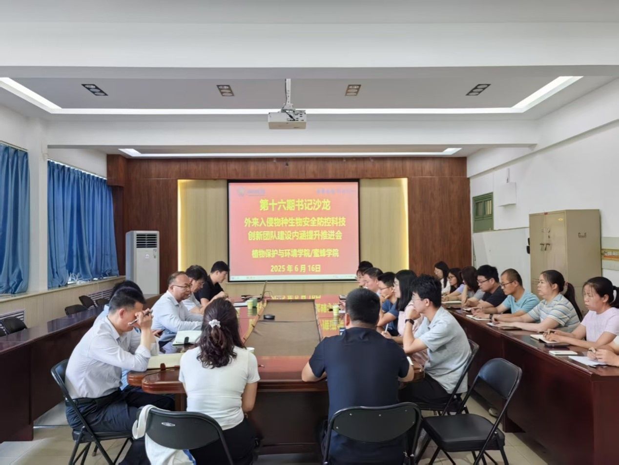 6月16日上午,植物保护与环境学院/蜜蜂学院在实验楼E307会议室举行第十六期书记沙龙暨外来入侵物种生物安全防控科技创新团队建设内涵提升推进会。学院领导班子、团队负责人及全体团队教师参加会议,共同围绕团队定位发展、人员发展规划、团队与学科同步建设等核心议题展开研讨,统筹推进学科平台和团队高质量发展,会议由植环学院副院长李松伟主持。