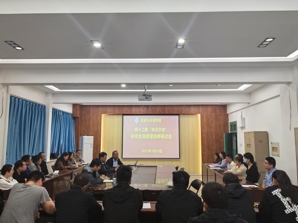 3月24日下午,资源与环境学院在实验楼E307会议室举行第十二期书记沙龙暨研究生高质量培养研讨会。学院班子成员和2021年以来入职的青年教师共计30余人,围绕招生策略优化与人才培养质量提升深入研讨我院研究生招生重点工作。