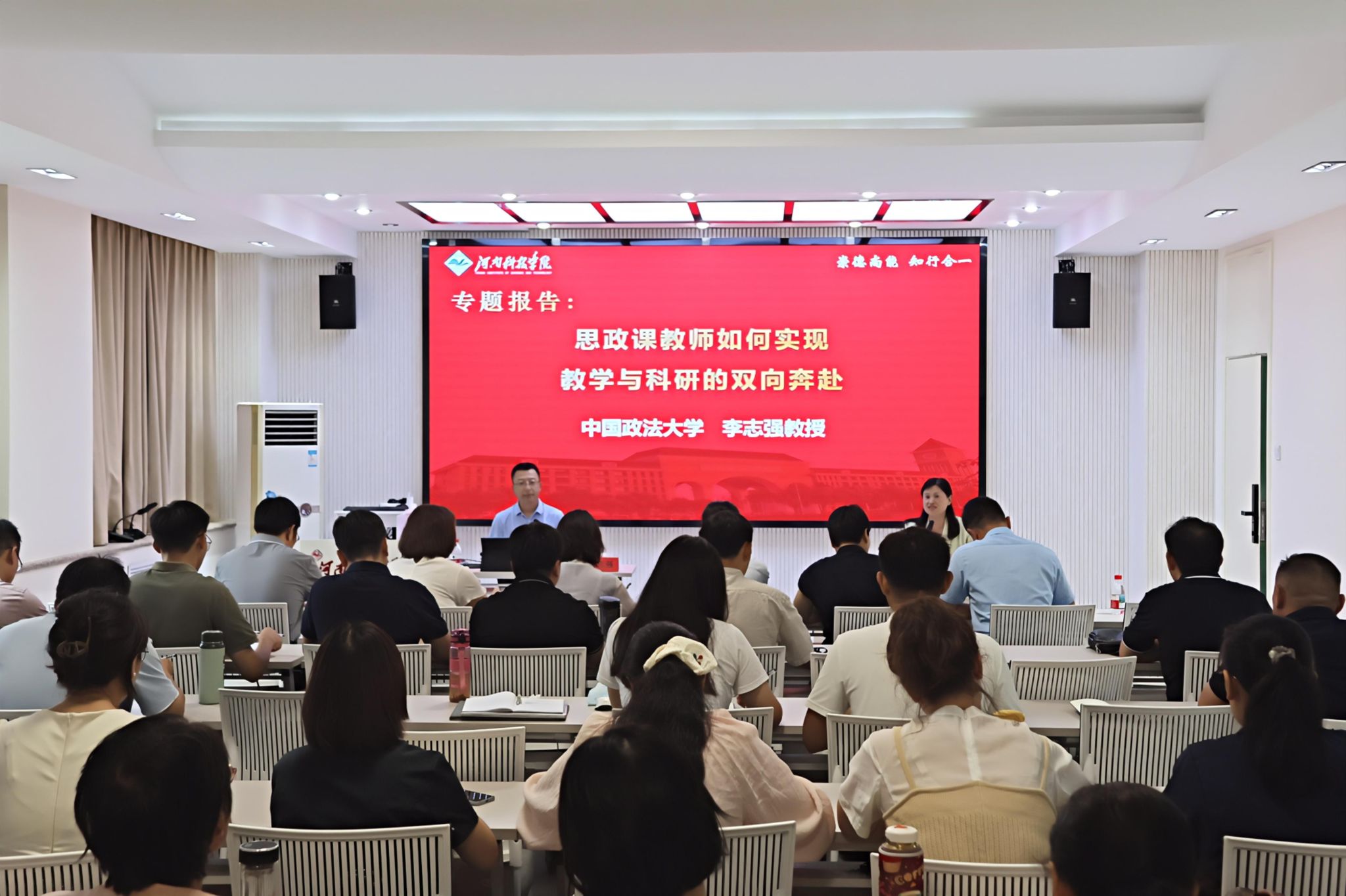 中国政法大学博士生导师李志强教授应邀作专题报告。他结合深厚的学术积累与丰富的实践经验,从教学与科研互动的必要性、实现路径、统一策略以及实际案例四个维度,系统阐述了思政课教学中教学与科研相辅相成、协同促进的辩证关系。